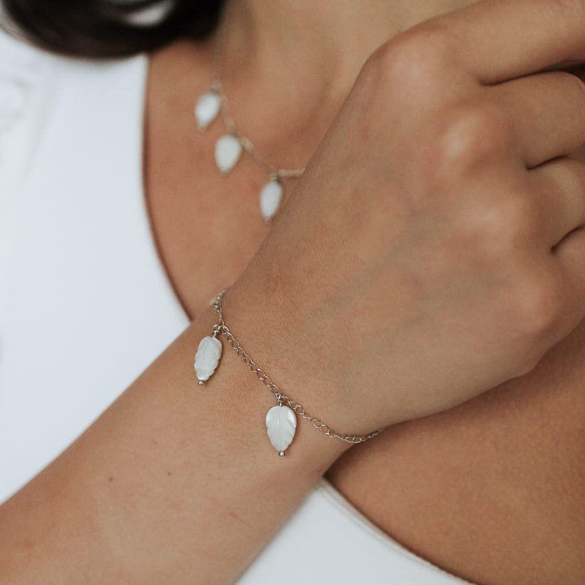 Bransoletka srebrna pr. 925 ,,Listki z naturalnej masy perłowej”