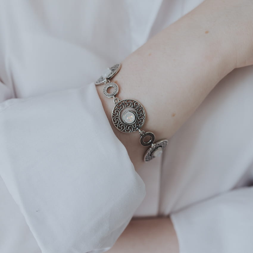 Bransoletka uleksyt-opal: Wykonana ze srebra pr. 925. Efektowna i wyrafinowana, idealna na wieczorne wyjścia.