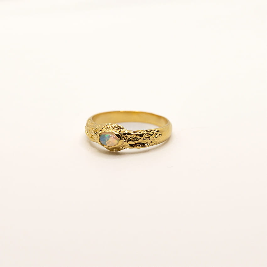 pierścionek z opalem · pierścionek srebro 925 · ręcznie robiony pierścionek · pierścionek Molten Beauty · biżuteria artystyczna · srebro · pierścionek z opalem