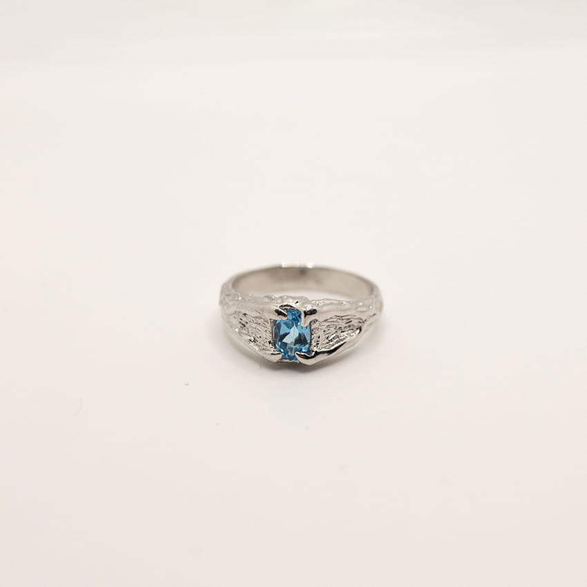 elegancki pierścionek z niebieskim topazem · pierścionek srebro 925 · ręcznie robiony pierścionek · pierścionek Molten Beauty · biżuteria artystyczna · srebro · pierścionek z topazem
