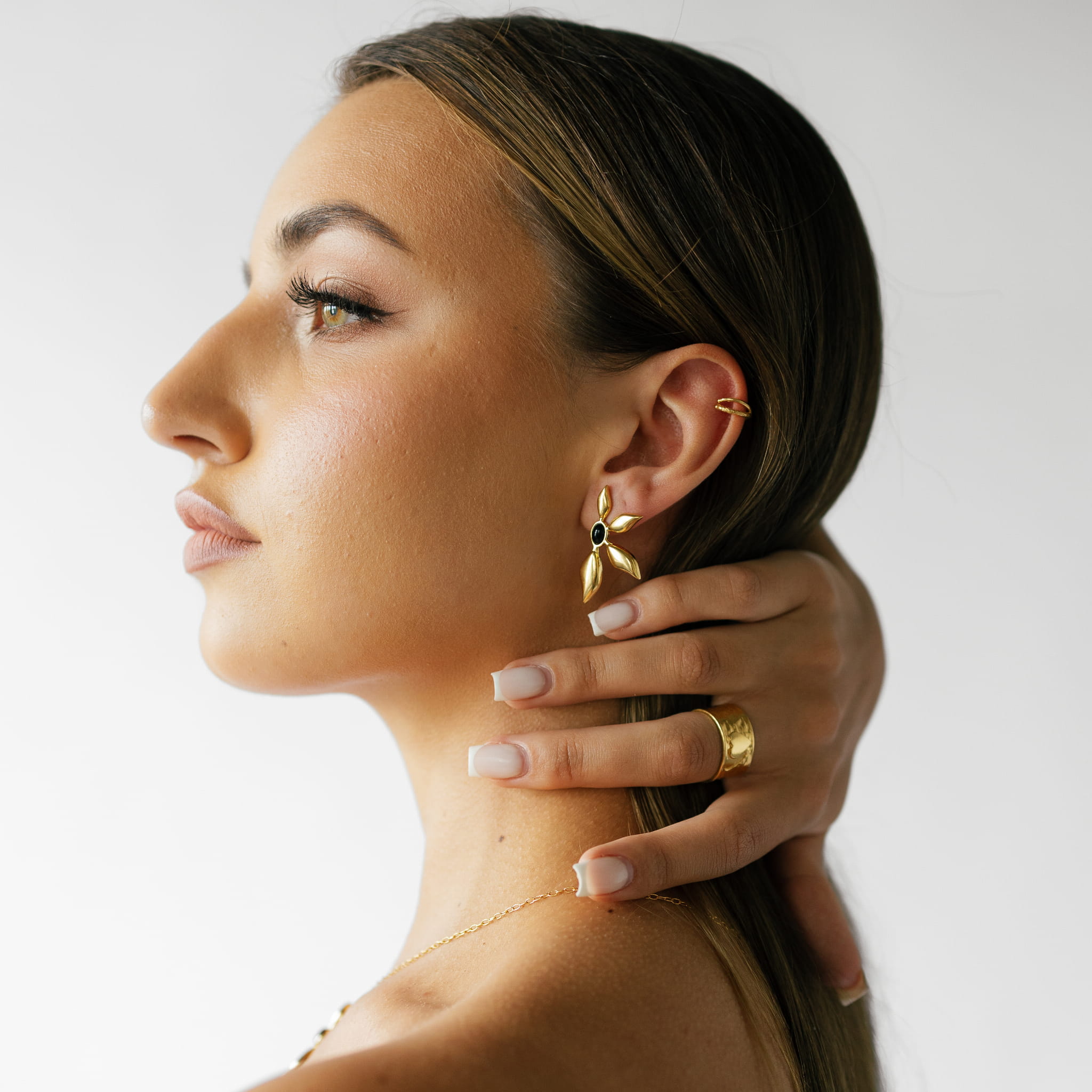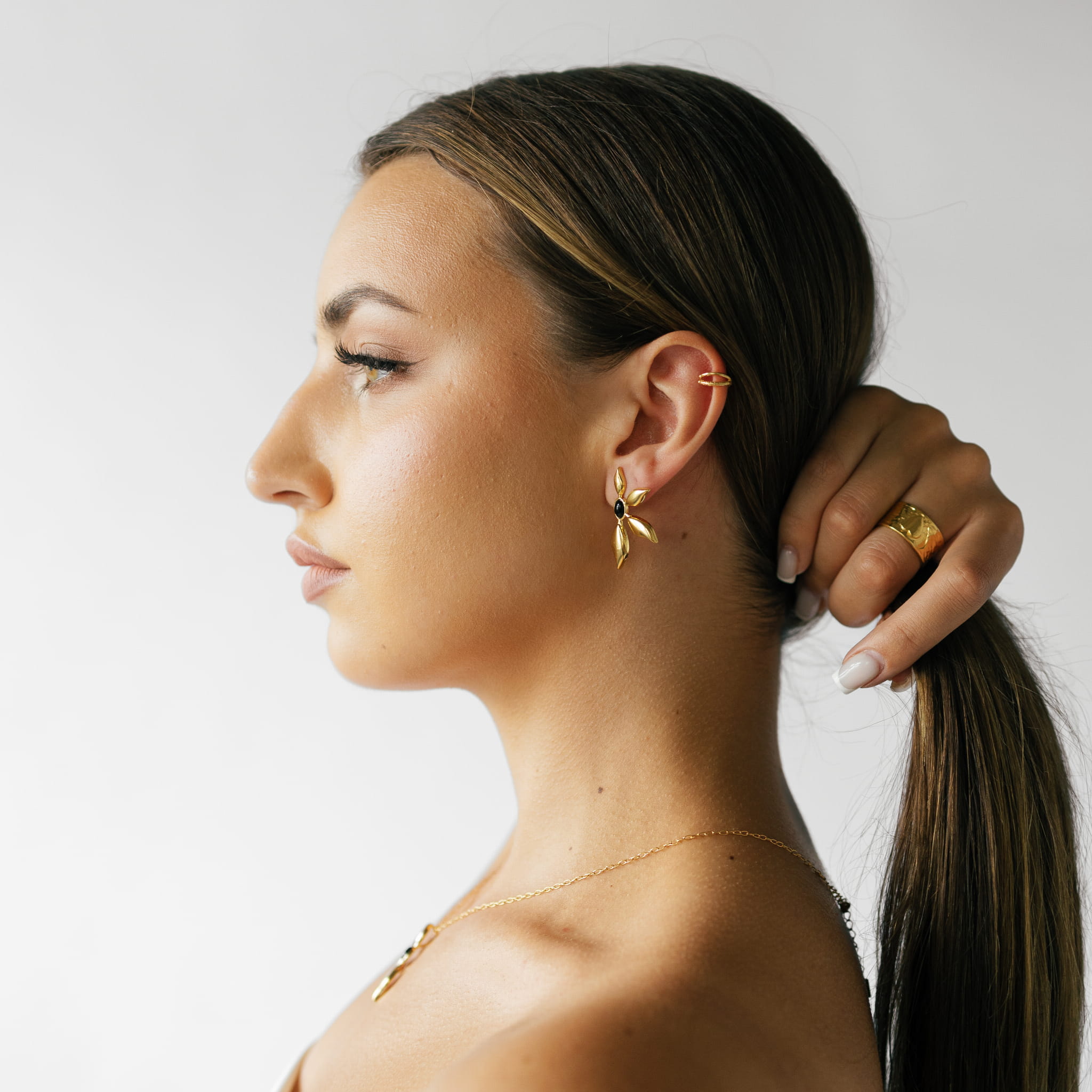 Kolczyki pozłacane LILI MINI z onyksem