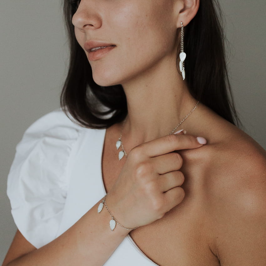 Naszyjnik srebrny pr. 925 ,,Listki z naturalnej masy perłowej”