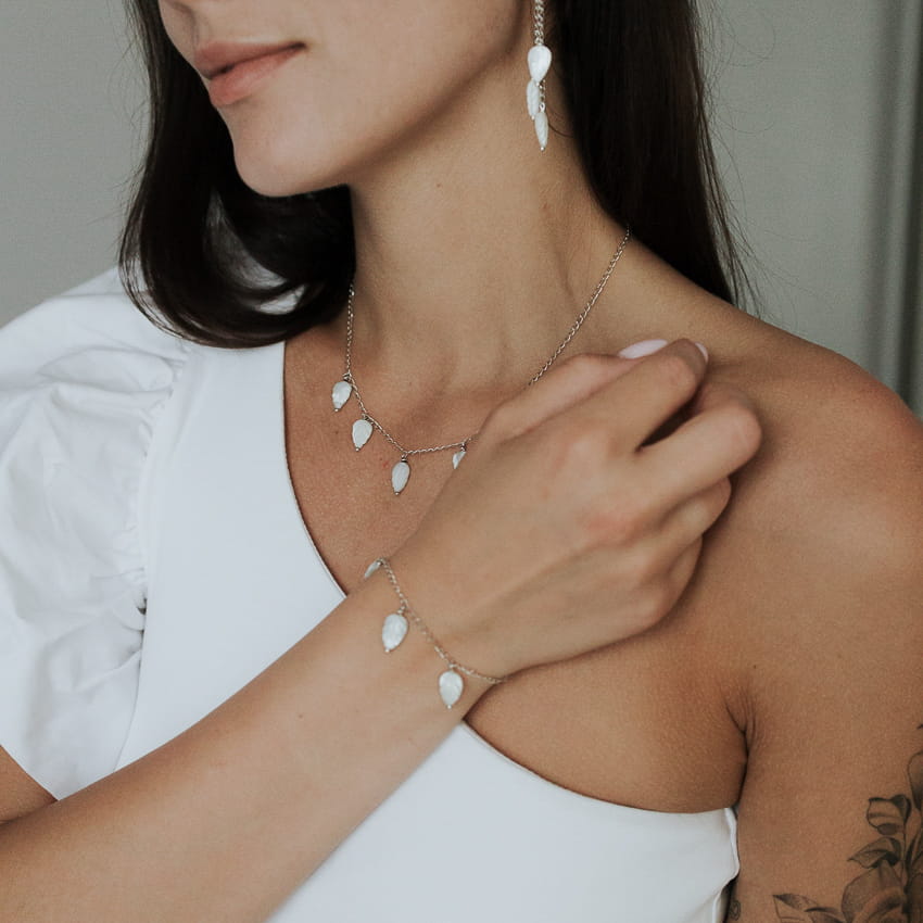 Kolekcja „Pearls” to wyjątkowa linia biżuterii, która harmonijnie łączy klasyczną elegancję z nowoczesnym designem. Wszystkie elementy wykonane są ze srebra najwyższej próby 925, pokrytego 24-karatowym złotem, co nadaje im wyrafinowanego i luksusowego charakteru. Kluczowym akcentem tej kolekcji są naturalne perły hodowlane, które emanują subtelnym blaskiem i wyjątkowym urokiem.