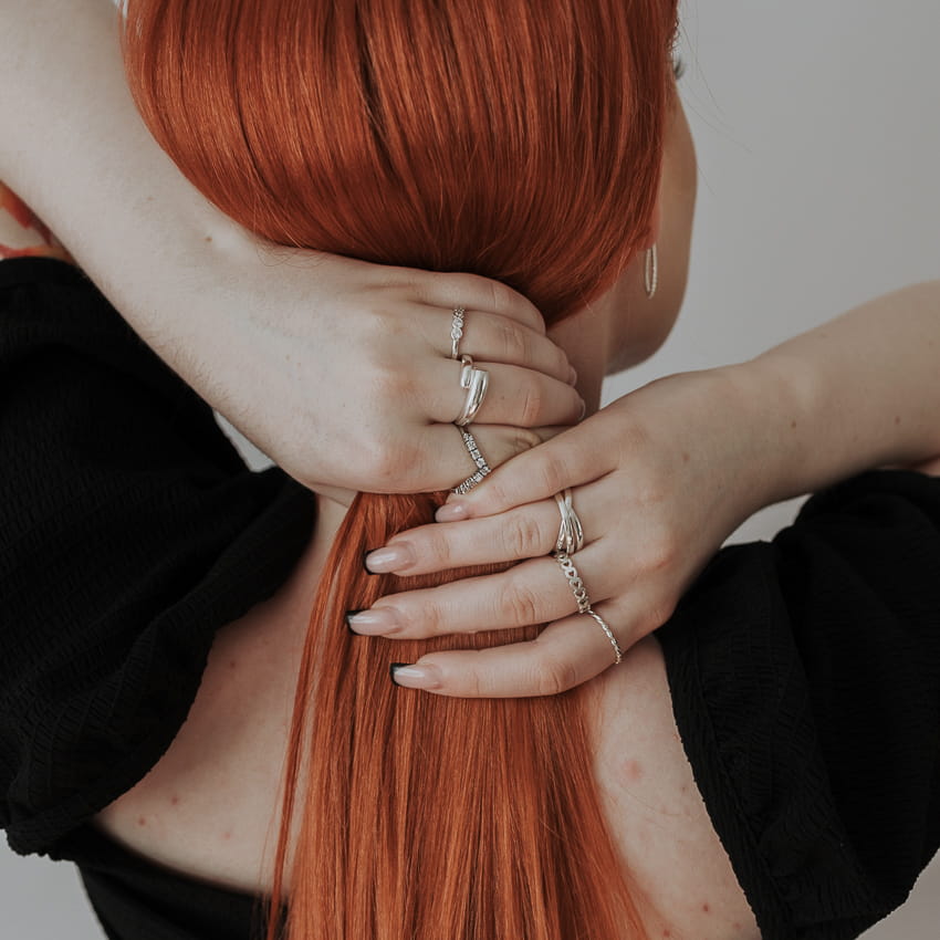 Obrączka srebrna z regulacją rozmiaru.