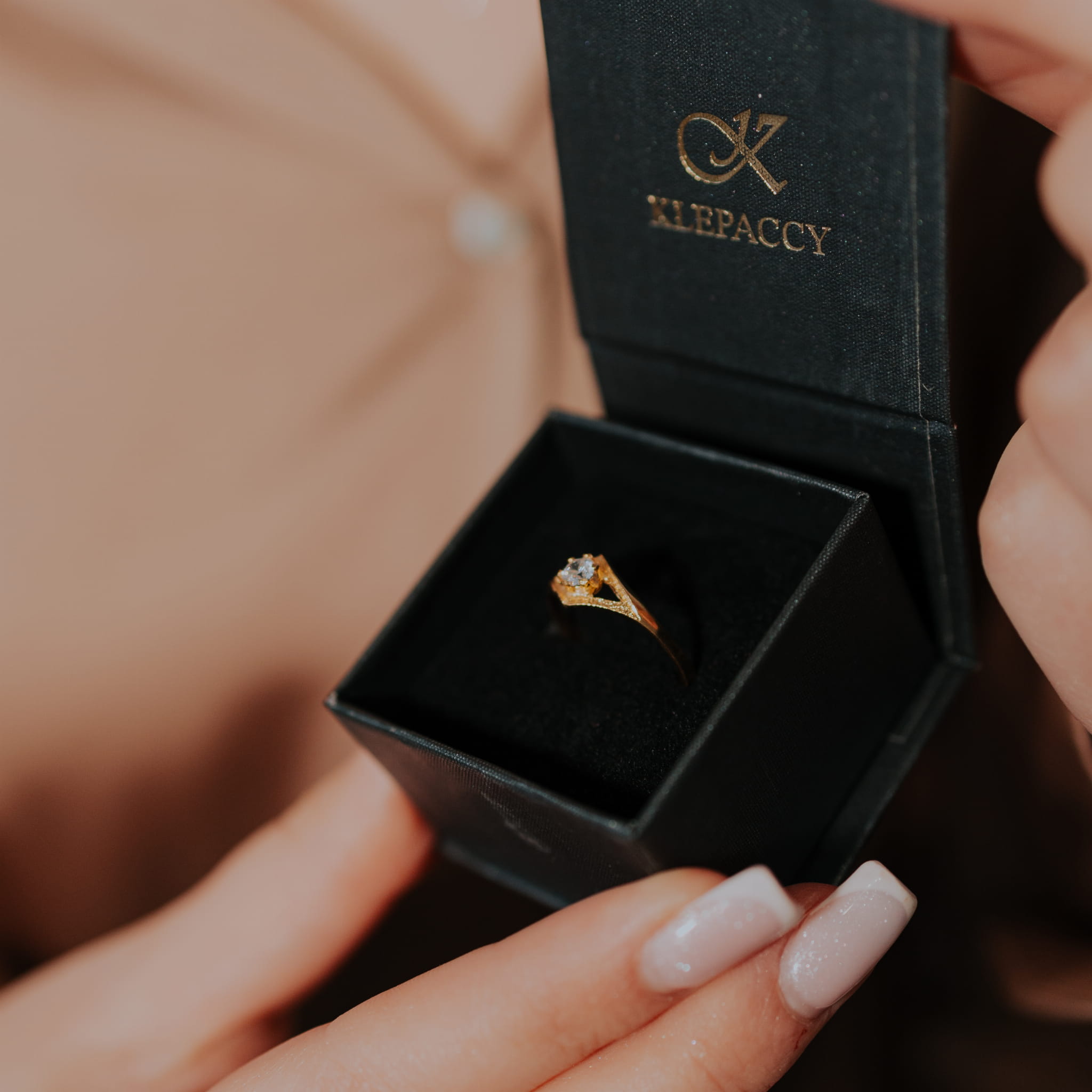 - Sprawdź rozmiar w tabeli rozmiarów pierścionków.
