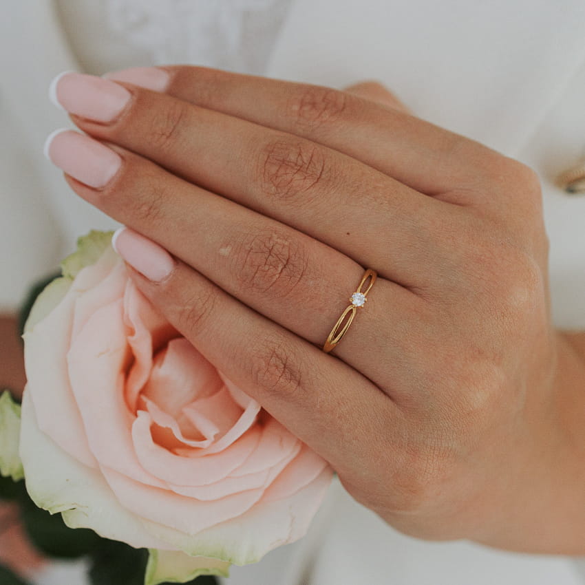 Złoty pierścionek z diamentem to esencja klasycznej elegancji.