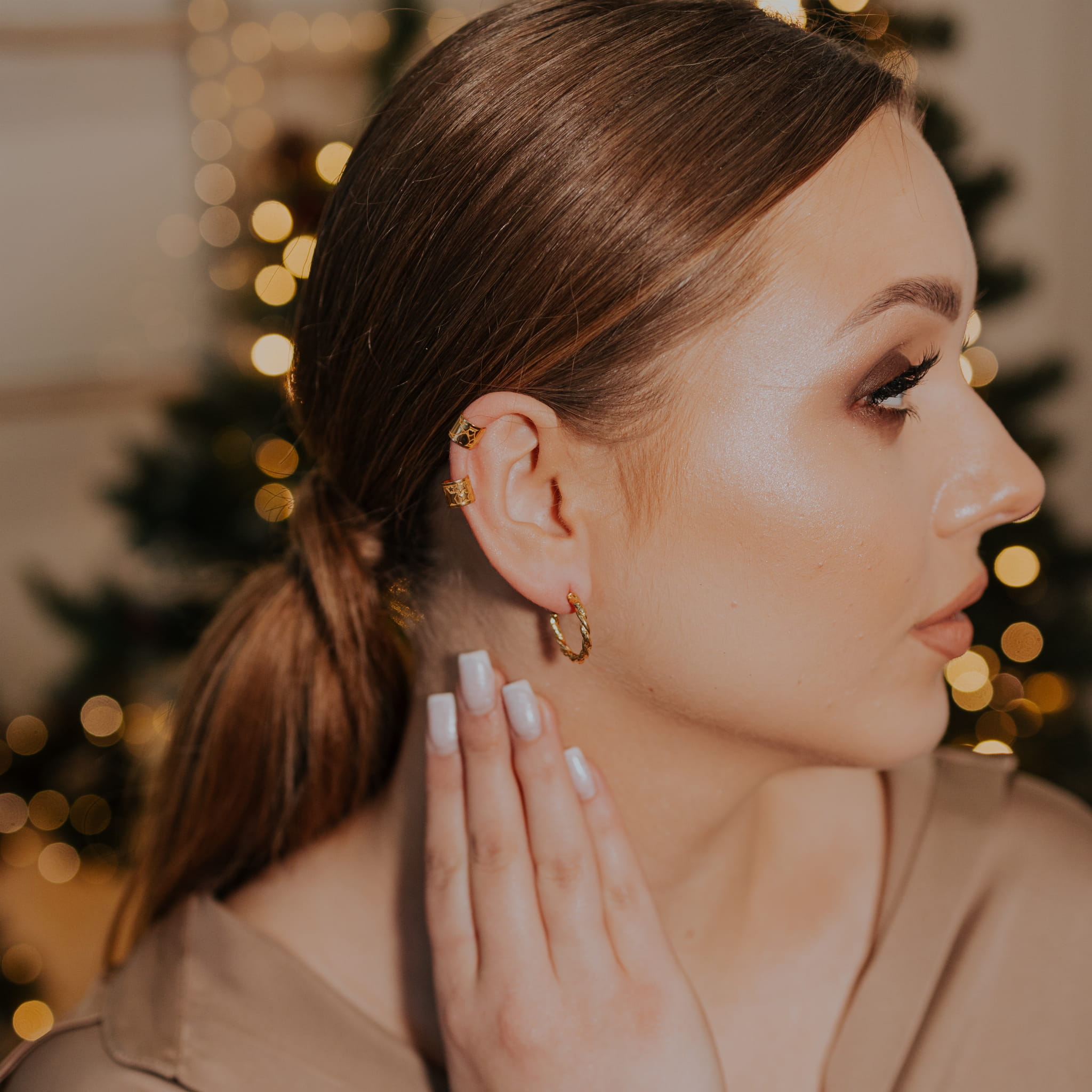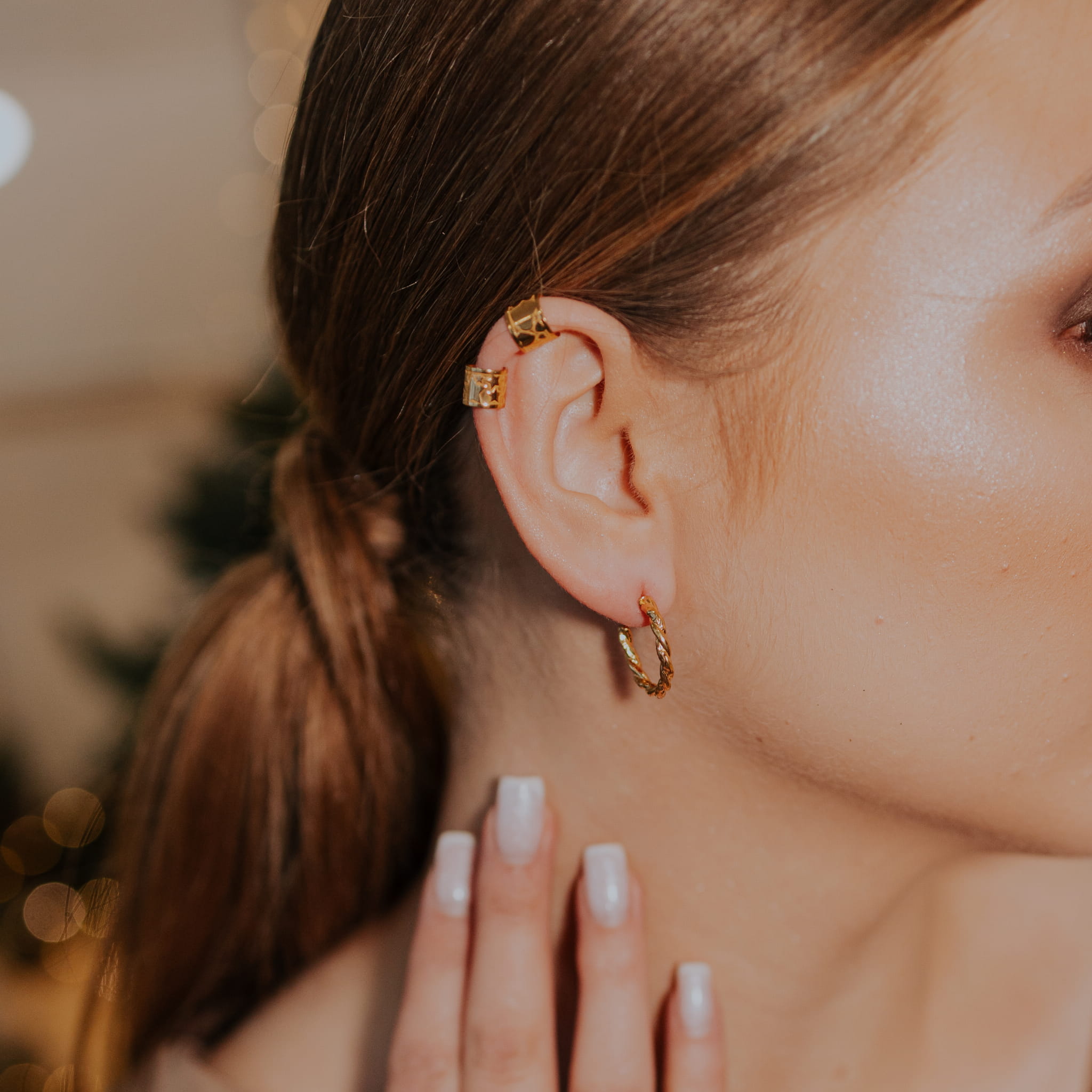 Pozłacane kolczyki koła przeplatane