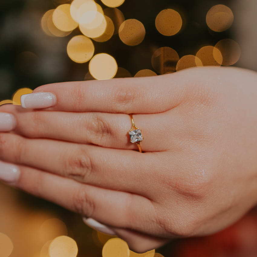 Pozłacany pierścionek GLIMMER z kwadratową cyrkonią