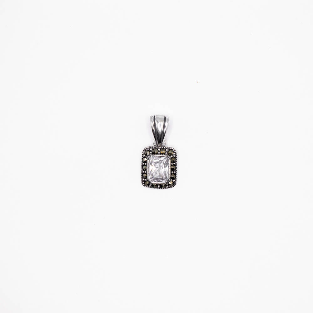 Zawieszka srebrna z cyrkonią i markazytami prostokątna