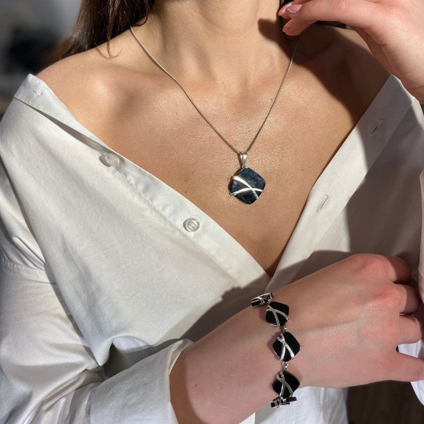 Zawieszka srebrna pr. 925 z kwadratowym onyksem